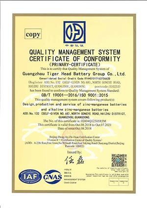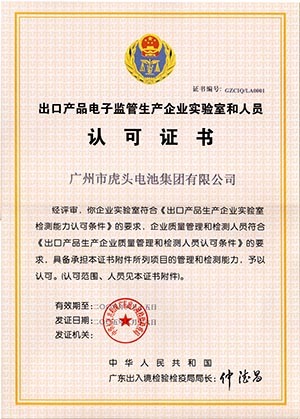 Based on strengthening quality control and seeking development with technical progress, Tiger Head Battery Group Co., Ltd. has been making persistent efforts to excel. As one leading company using computer-controlled automatic discharging detection facility to fulfill strict quality monitoring in production, the company is marked as an excellent enterprise of light industrial in China with advanced quality control system. It has passed the certification for ISO9001: 2000 quality management system, occupational health and safety management system and the qualification of customs AEO management system. For years running, it has been evaluated as the "Excellent Enterprise in Quality and Profit" by the Ministry of Foreign Trade and Economic Cooperation, PRC, the State Bureau of Light Industry, and the Quality Control Association of Guangdong Province.