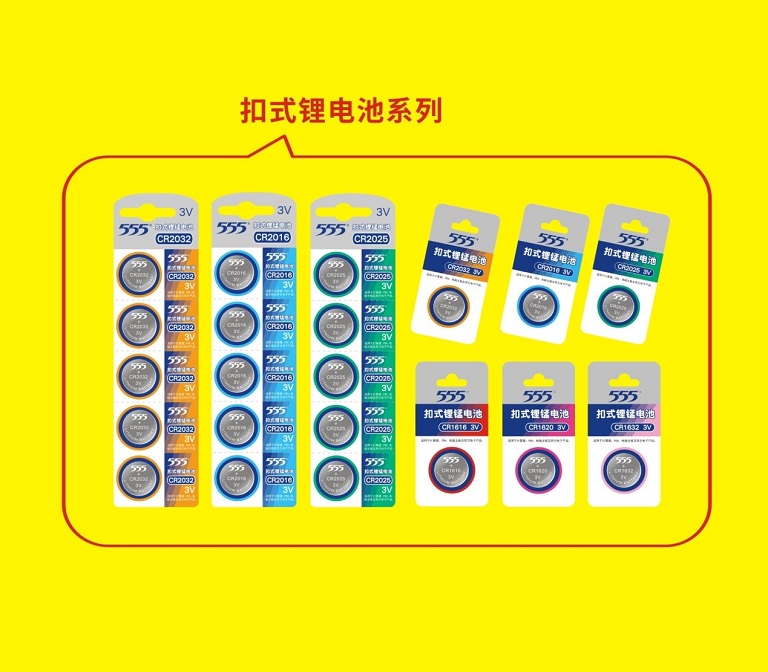 555扣式电池性能可靠,绿色环保,低自放电,超强防漏,适用于智能钥匙、遥控器、计算器、手表、计步器、电子健康称、电子钟、电脑主板、电子标签读写器及其它电子产品,是你的智能生活好拍档。555扣式电池目前有6个品种,分为CR20系列和CR16系列,力求为消费者提供更多的优质产品。