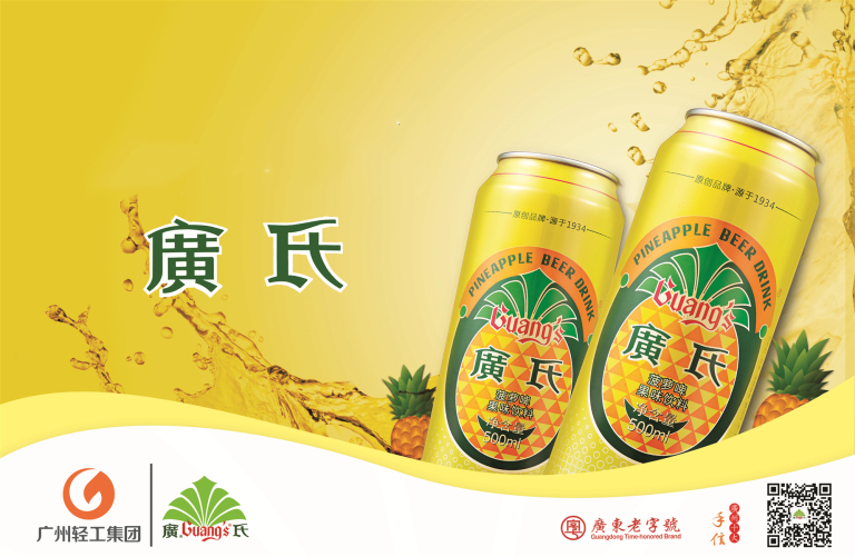 廣氏菠萝啤是国内始创品牌,以啤酒为基础的菠萝香型饮料,是极具岭南特色的一款饮料,它以麦芽、大米、砂糖、酒花等为原料,与岭南佳果---优质甜心菠萝成熟一刻散发的芬芳完美结合。以其果香浓郁、酸甜适中、营养丰富,口味清新怡神的独特风格,在华南地区深受消费者的青睐。